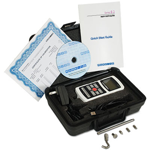 仪器箱,附件一包(钩头、压头、锥型头、一字头、延长杆、V型头)交流配适器.充电池,USB线缆,NIST校准报告,CD操作手册,数据传输软件。